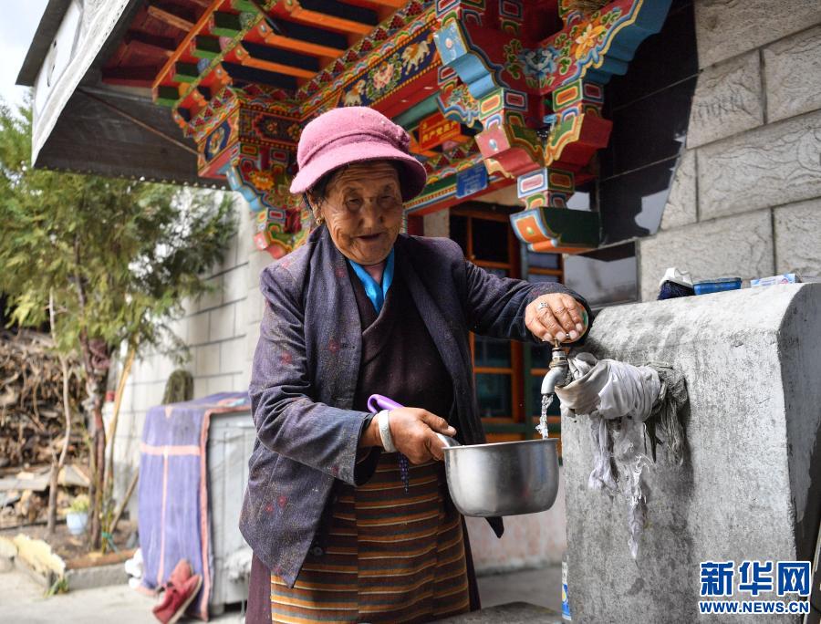 達娃在自己家中接自來水(3月15日攝)。新華社記者 晉美多吉 攝