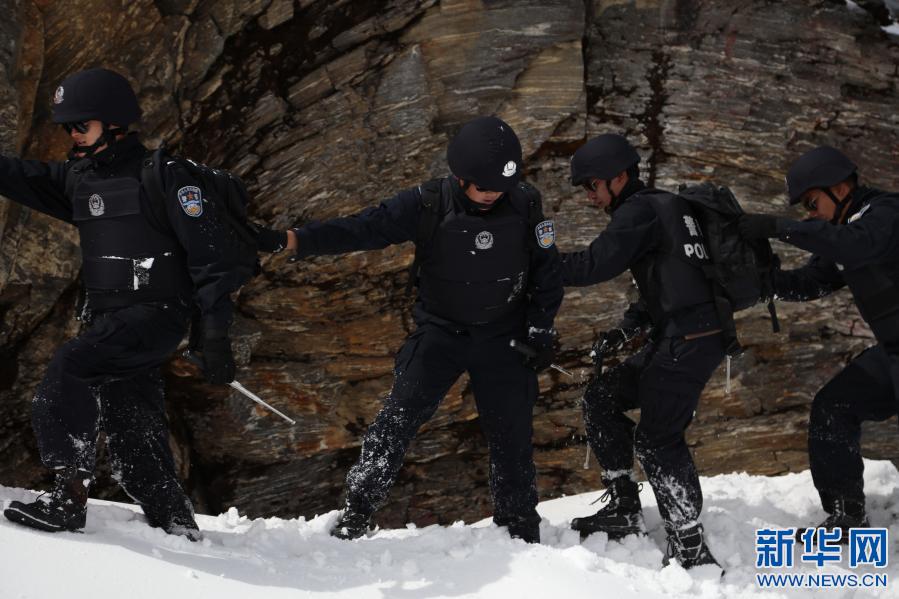 楊帆等5位警察正在乃堆拉巡邏(2021年3月19日攝) 新華社發(fā) 張雨強(qiáng)攝