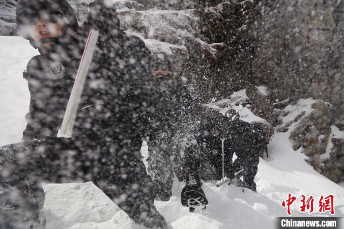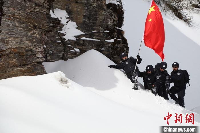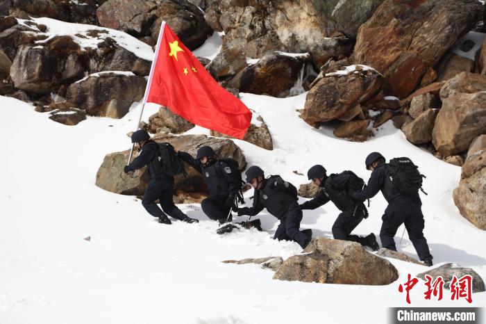 民警們一路趟冰河、翻雪山,向目標(biāo)點(diǎn)位艱難前行。隨著海拔升高,含氧量降低,即使是西藏本地人,初上乃堆拉的阿旺邊巴也開始?xì)獯跤酢?/p>