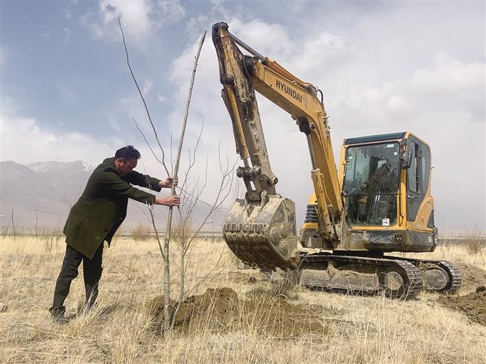 死了那么多樹,為什么還在堅持?“那幾年,在這里隨手捧起一把黃土,還會沙化。我必須堅持下來?!彼骼柿_布說。2015年春天,索朗羅布再次貸款40余萬元購買了一臺挖掘機,準備修建水渠和挖坑。同年3月,索朗羅布又一次獨自種樹苗,母親卓瑪央金心疼壞了,于是帶著村里姐妹們前來幫忙。不僅如此,她們還帶來了防止草原鼠啃食樹根的土方法,用塑料瓶圍著樹根包一圈,既能防止草原鼠搞破壞,還能節(jié)省成本。