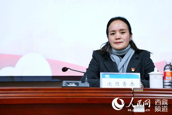 西藏自治區(qū)圖書館館長次旦普赤講話。人民網 李海霞攝