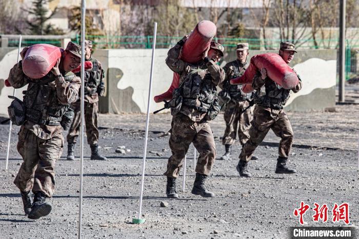 圖為西藏軍區(qū)某旅新兵扛著模擬“傷員”進(jìn)行戰(zhàn)場搬運考核。西藏軍區(qū)某旅 攝