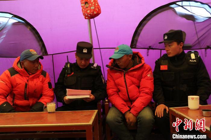 圖為民警了解登山隊人員信息情況。珠峰邊境派出所供圖