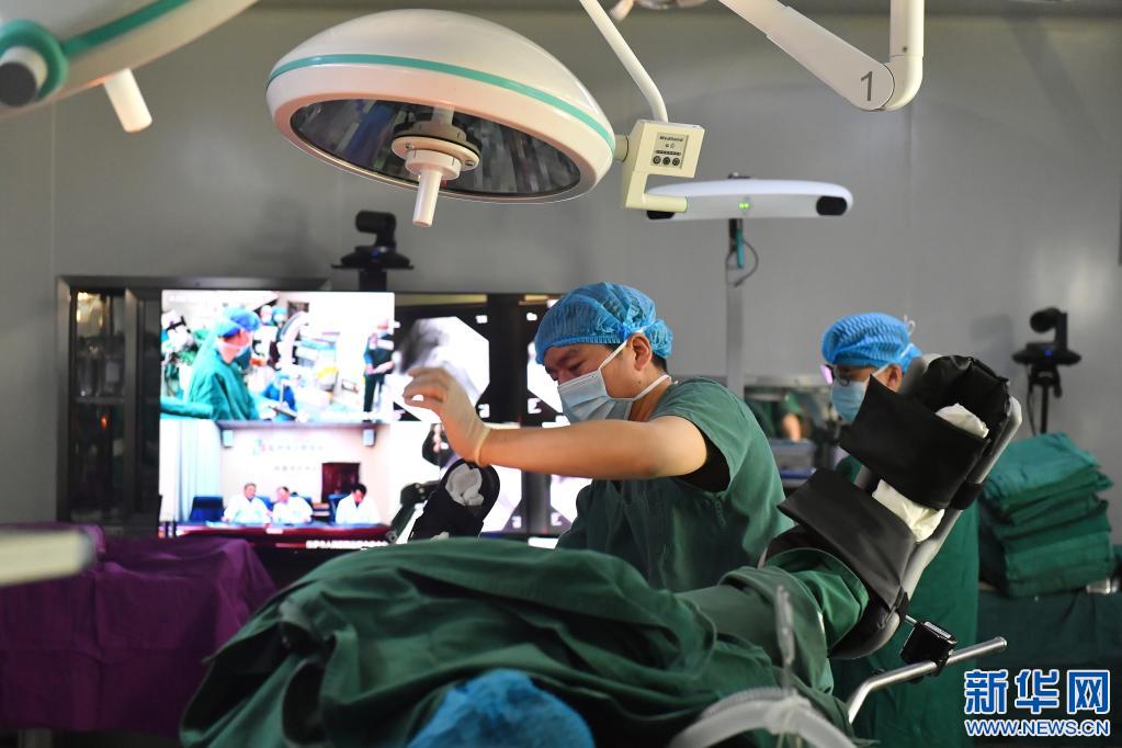 4月19日,拉薩市人民醫(yī)院骨科醫(yī)生在北京積水潭醫(yī)院專家遠(yuǎn)程指導(dǎo)下使用骨科機(jī)器人開展骨科手術(shù)。新華社記者 孫瑞博 攝