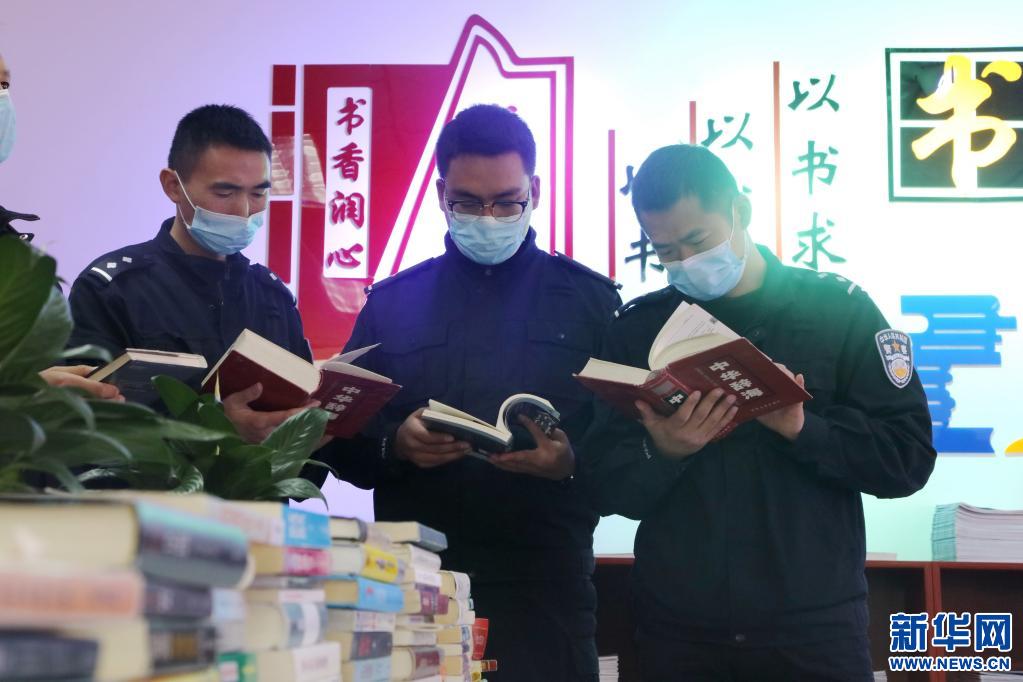 亞?wèn)|出入境邊防檢查站民警在圖書室借閱書籍。(張雨強(qiáng)攝,新華社發(fā))
