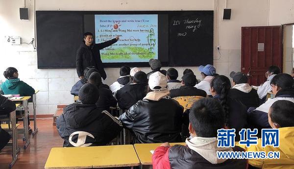 陳洪順給西藏自治區(qū)昌都市貢覺縣中學的學生上課(2020年4月30日攝)。新華社發(fā)