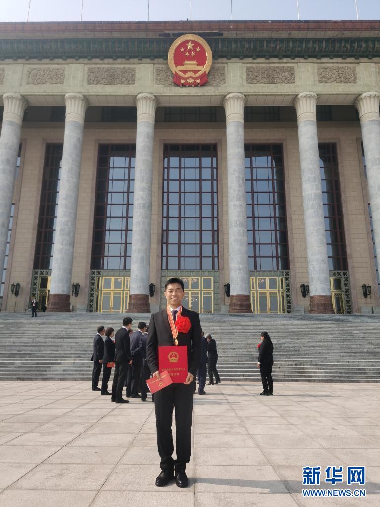 陳洪順榮獲全國脫貧攻堅先進個人稱號后,在北京人民大會堂前留影(2月25日攝)。新華社發(fā)