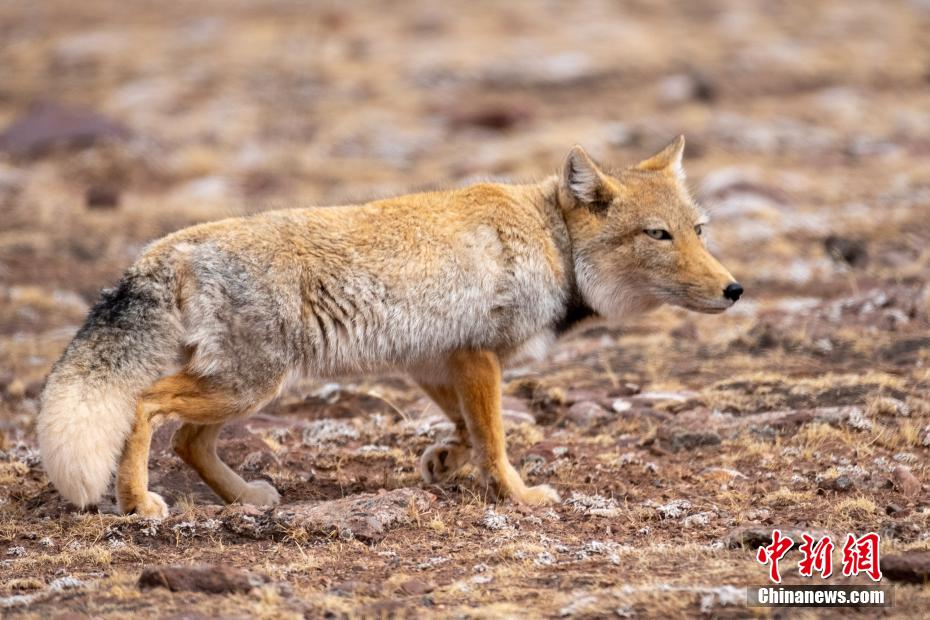 圖為5月3日,記者在西藏班戈縣偶遇藏狐,因表情奇特,藏狐被網(wǎng)友戲稱為行走的“表情包”。江飛波 攝