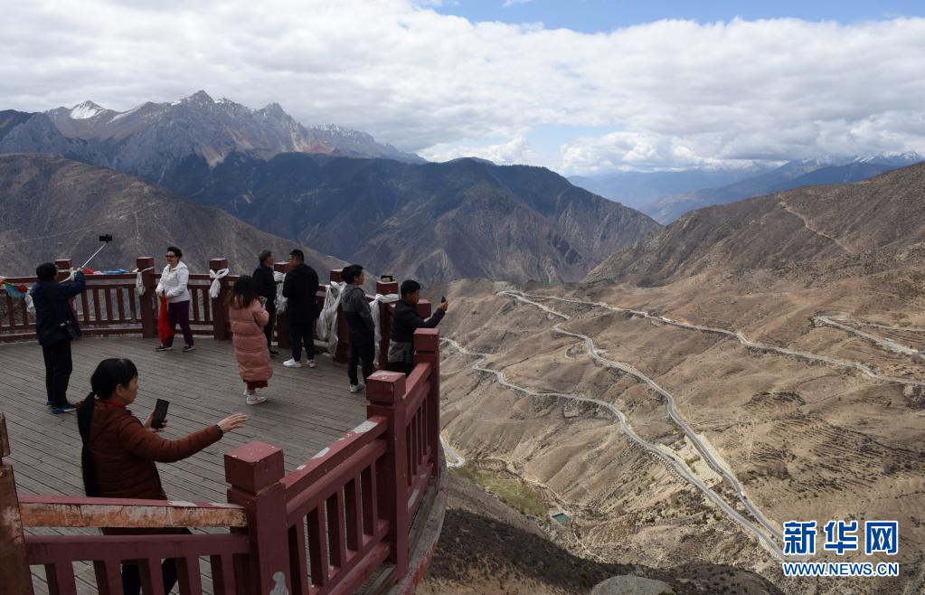 游客在觀景平臺眺望壯觀的怒江72道拐(5月3日攝)。新華社記者 陳燮 攝