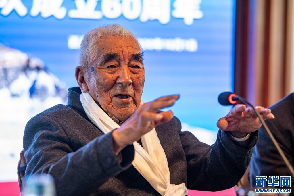 2020年10月1日,87歲高齡的老登山家貢布在慶祝中國(guó)西藏登山隊(duì)成立60周年活動(dòng)上致辭。新華社記者孫非攝