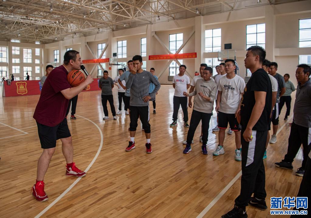 2020年9月,焦健(左一)在中國(guó)籃球協(xié)會(huì)E級(jí)教練員培訓(xùn)班(西藏站)實(shí)踐課程上為學(xué)員進(jìn)行技術(shù)講解。新華社記者孫非攝