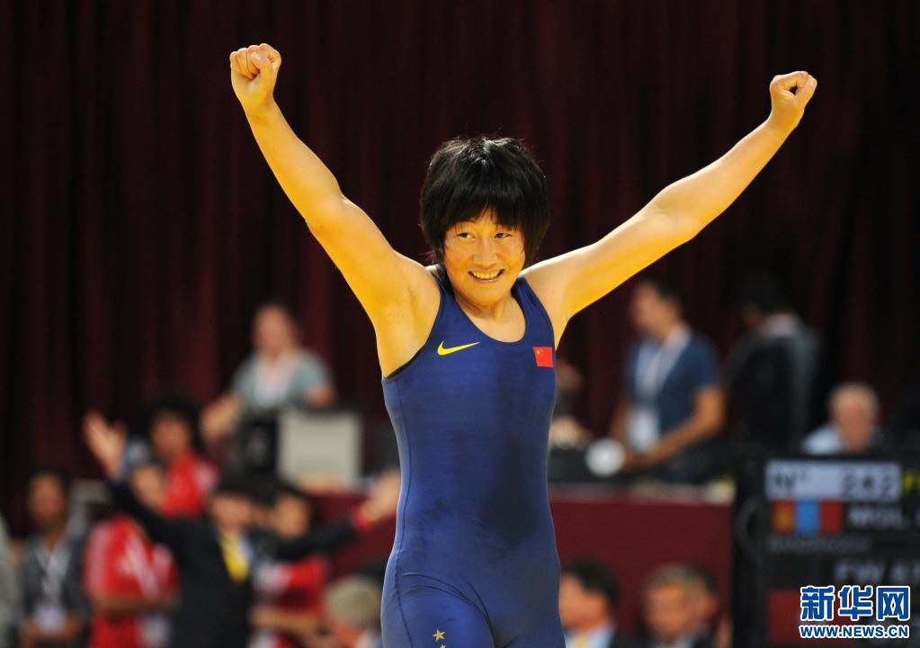 2011年摔跤世錦賽女子自由式67公斤級(jí)比賽中,中國(guó)選手西洛卓瑪戰(zhàn)勝蒙古國(guó)選手班資日格其,奪得金牌。新華社記者馬研攝