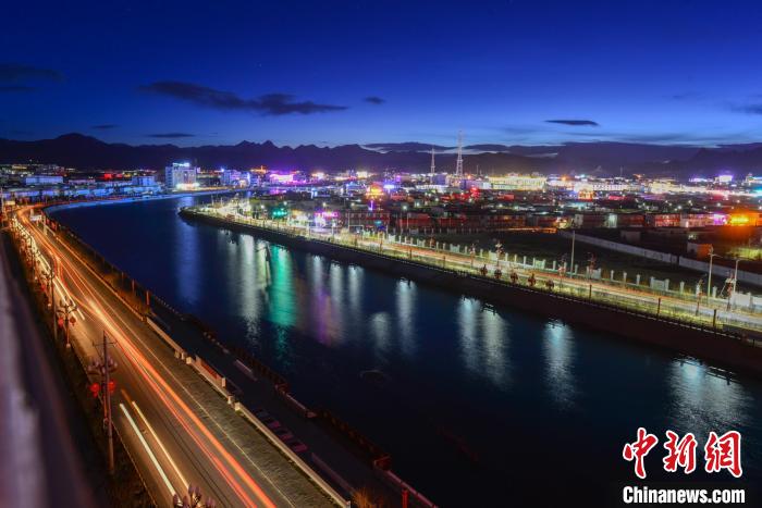 圖為西藏阿里地區(qū)獅泉河鎮(zhèn)入夜,華燈初上。2020年12月,隨著大電網(wǎng)電的接入,阿里地區(qū)從此告別缺電。 江飛波 攝