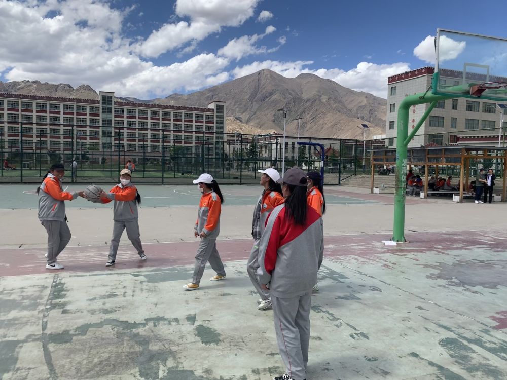 6月1日,西藏自治區(qū)拉薩市,拉薩那曲第二高級中學女學生們在操場打籃球。新華社記者齊菲攝