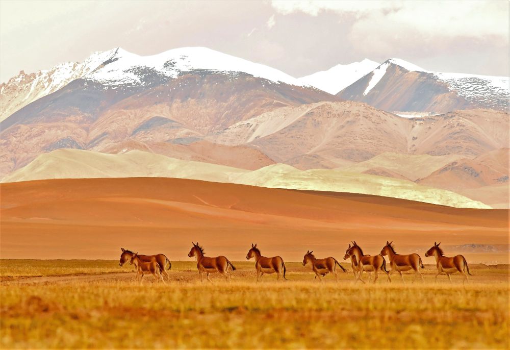 不只是藏羚羊數(shù)量迅速增長(zhǎng),西藏絕大多數(shù)物種種群數(shù)量恢復(fù)性增長(zhǎng)明顯。數(shù)據(jù)顯示,藏野驢數(shù)量由原來(lái)的5萬(wàn)頭左右增加到現(xiàn)在的約9萬(wàn)頭,黑頸鶴數(shù)量由原來(lái)的1000至3000只上升到約8000只,野牦牛數(shù)量增加至現(xiàn)在的1萬(wàn)頭左右,野生動(dòng)物在保護(hù)區(qū)內(nèi)自由繁衍生息。