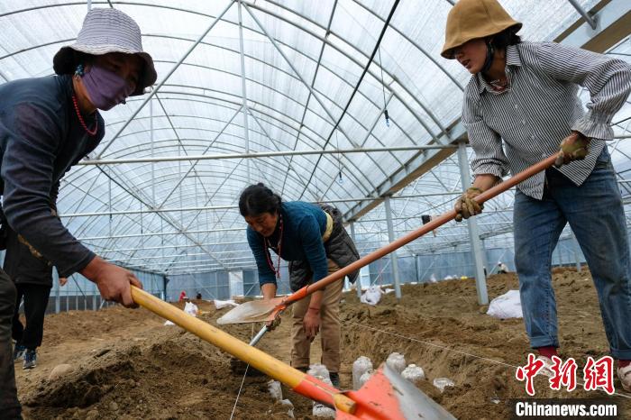 正在大棚內(nèi)松土的措姆介紹,自己是附近的農(nóng)牧民,根據(jù)熟練程度,她們每天的務(wù)工費(fèi)從180元到200多元不等?!皥@區(qū)還負(fù)責(zé)一頓午飯,也不影響自家的農(nóng)活,有空就來?!贝肽氛f。