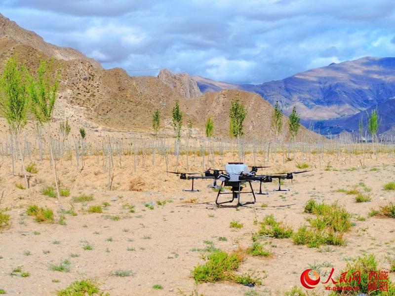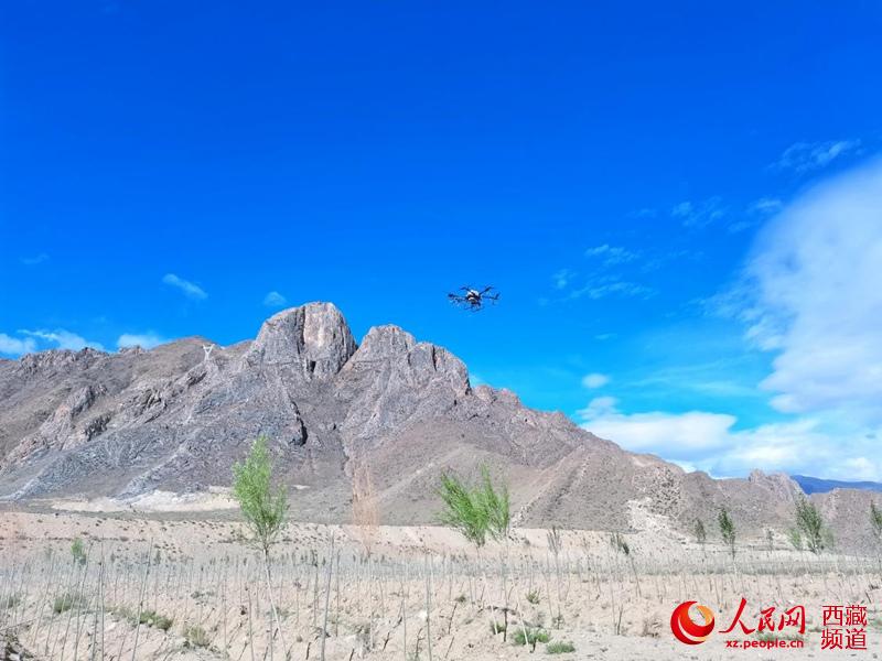 “11分鐘,13畝?!比涨?,拉薩桑達村內(nèi),一架承載著20公斤樹種的無人機,按照預先設計好的軌跡飛行作業(yè),短短十幾分鐘,就完成了人力幾天才能完成的工作。