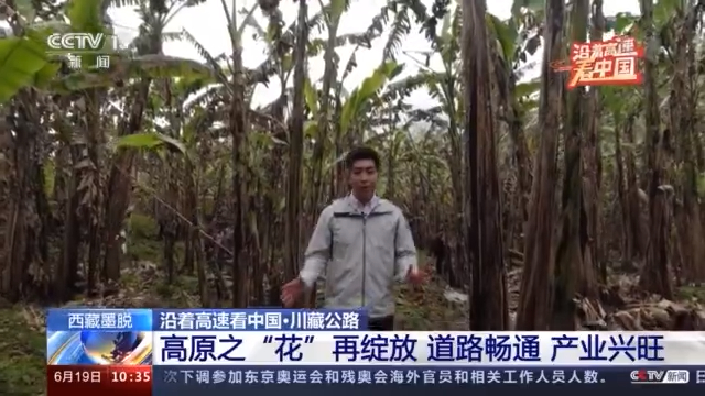 總臺(tái)記者 孟湛東:我現(xiàn)在是在扎墨公路沿線的一片香蕉林,墨脫地區(qū)的氣候條件跟西藏其他地方相比有很大的不同。在公路沿線,經(jīng)??梢钥吹较窀收?、檸檬、香蕉等等這樣的熱帶經(jīng)濟(jì)作物。近幾年,扎墨公路貫通了之后,很多游客會(huì)駕車,通過(guò)公路進(jìn)入到墨脫旅游,所以在沿線就會(huì)有很多的蕉農(nóng)砍下自己的香蕉,拿到路邊進(jìn)行銷售。