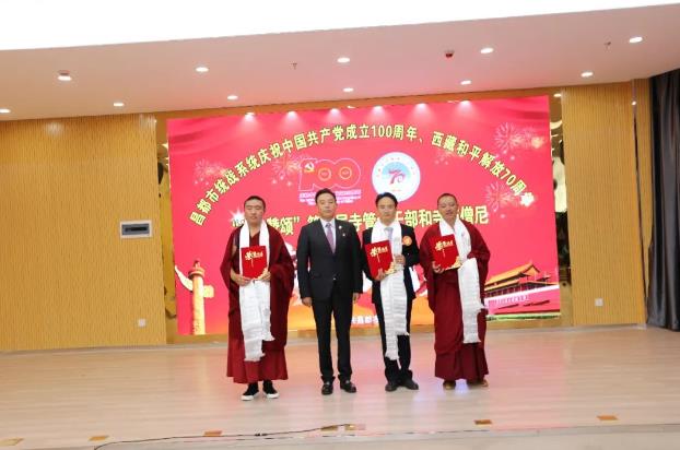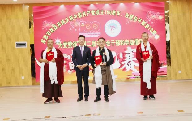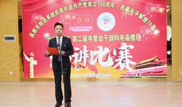 7月2日,昌都市委統(tǒng)戰(zhàn)部以慶祝中國共產(chǎn)黨成立100周年、西藏和平解放70周年“為黨贊頌”為主題,舉辦全市第二屆寺管會干部和僧尼演講比賽,市委常委、統(tǒng)戰(zhàn)部長,市政協(xié)黨組副書記澤仁俊美出席,市委宗教工作領(lǐng)導(dǎo)小組成員單位負(fù)責(zé)人和強(qiáng)巴林寺、卡若區(qū)寺管會干部代表、僧尼代表觀看了比賽。市委組織部、市委宣傳部、市委統(tǒng)戰(zhàn)部、市民委、市文化局、市宗教局等單位負(fù)責(zé)人擔(dān)任評委。