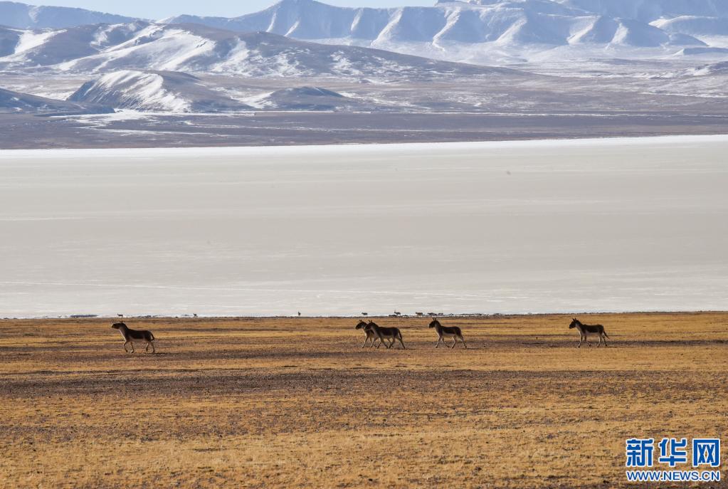 藏野驢在西藏那曲市羌塘國(guó)家級(jí)自然保護(hù)區(qū)內(nèi)奔跑。(新華社記者 田金文 攝)
