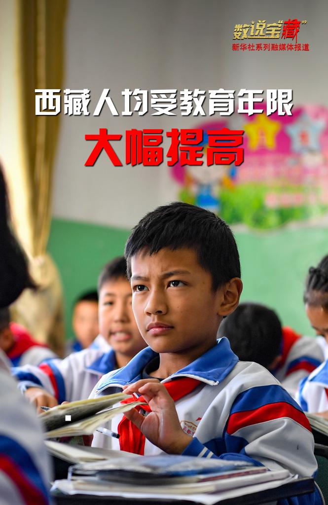 70年間,西藏通過(guò)完善現(xiàn)代教育體系、實(shí)行15年公費(fèi)教育等多種舉措,文盲率顯著下降,人均受教育年限得到大幅提高?!段鞑睾推浇夥排c繁榮發(fā)展》白皮書(shū)顯示:目前西藏新增勞動(dòng)力人均受教育年限提高到13.1年。
