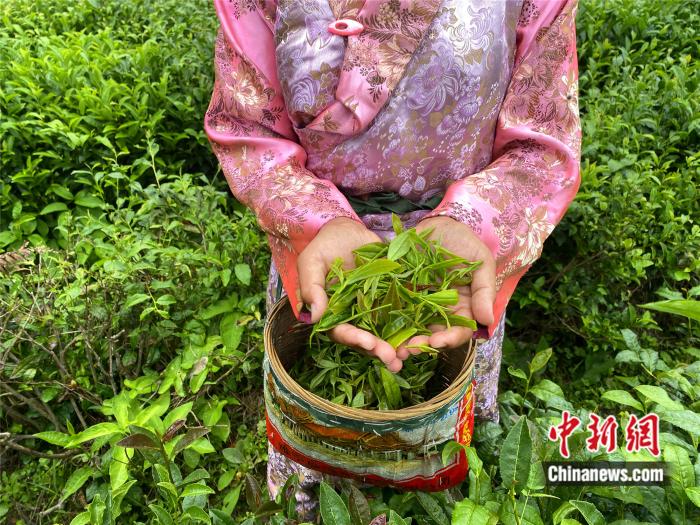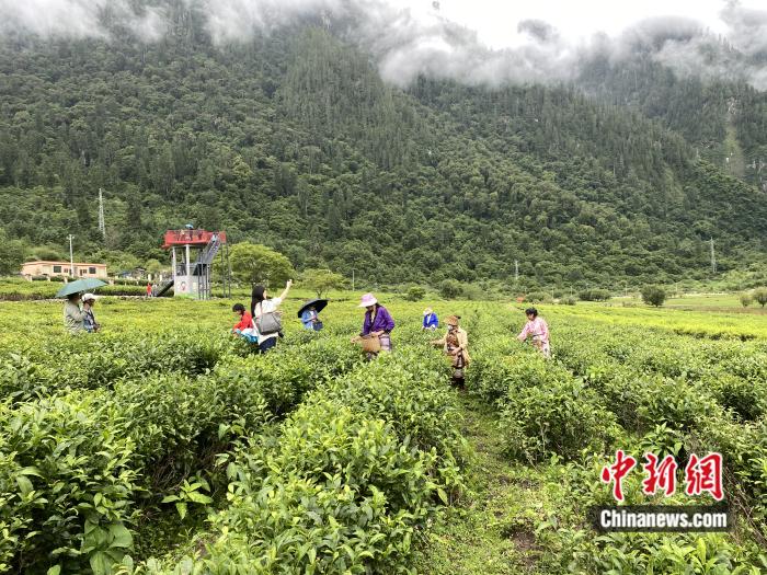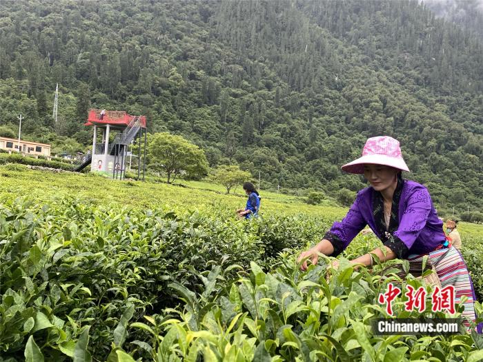 藏族姑娘在采茶。彭寧鈴 攝