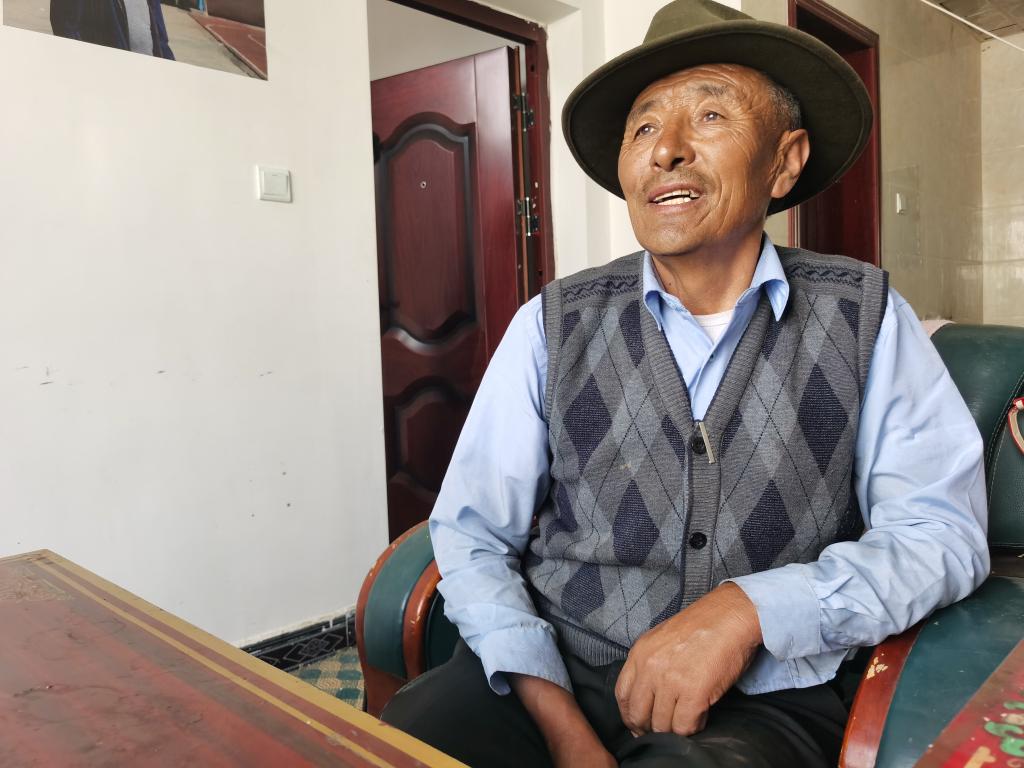 尼木縣麻江鄉(xiāng)達(dá)瓊村60歲村民仁青回憶曾經(jīng)撿牛糞、用煤油燈的生活(2021年7月14日攝)。新華社記者劉洪明 攝