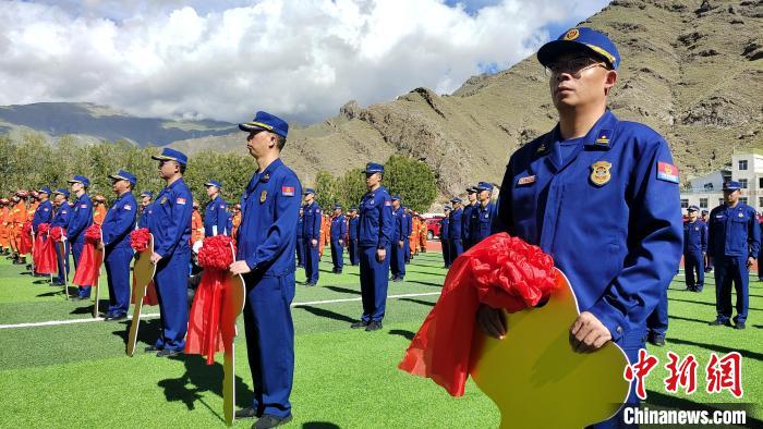 圖為西藏自治區(qū)消防救援總隊及各支隊代表共有200余人參加配發(fā)儀式。貢桑拉姆 攝