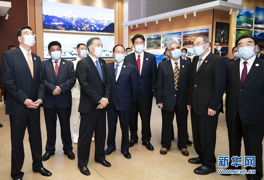 汪洋等走進(jìn)展廳,一邊仔細(xì)觀看展板,一邊認(rèn)真聽取講解。《十七條協(xié)議》簽字儀式歷史照片、實行民族區(qū)域自治制度的展板、對口援藏資金圖表、《西藏自治區(qū)民族團(tuán)結(jié)進(jìn)步模范區(qū)創(chuàng)建條例》圖片……一塊塊展板、一張張圖片圖表,生動展現(xiàn)了70年來西藏在黨的領(lǐng)導(dǎo)下取得的長足發(fā)展。汪洋不時駐足觀看,詳細(xì)詢問有關(guān)情況,對西藏近年來各項事業(yè)取得的成就予以充分肯定。