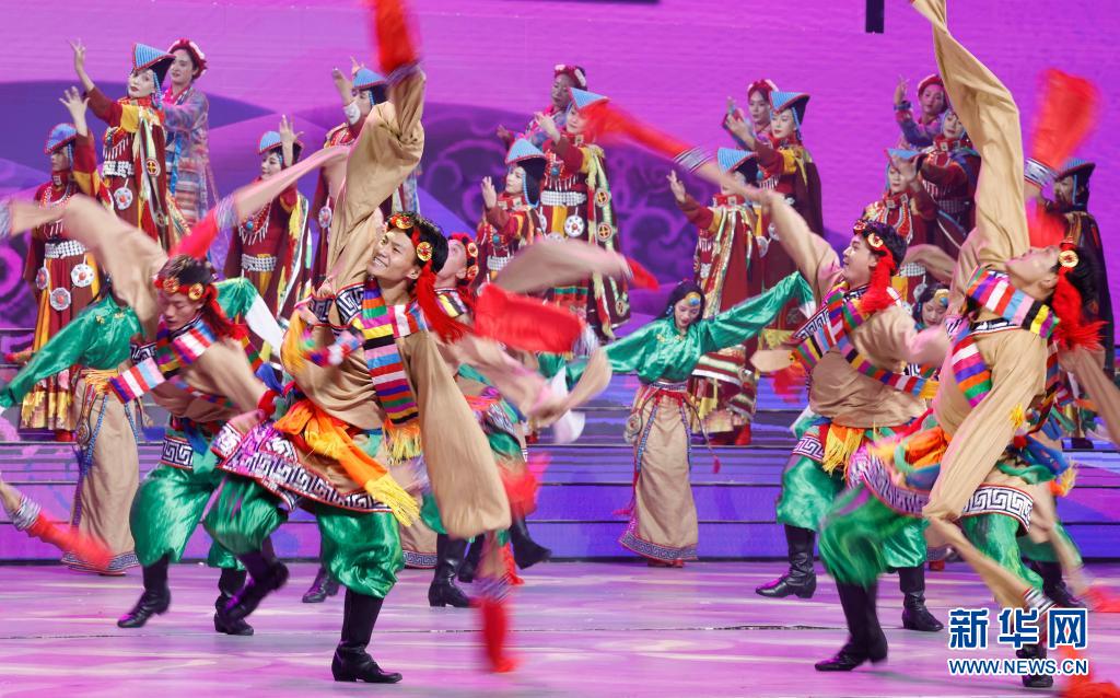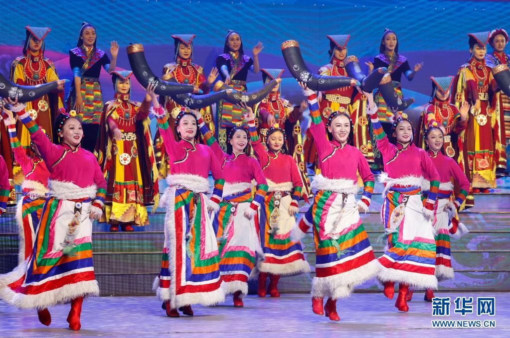 8月19日,慶祝西藏和平解放70周年文藝演出《西藏兒女心向黨》在拉薩西藏人民會堂精彩上演。新華社記者 黃敬文 攝