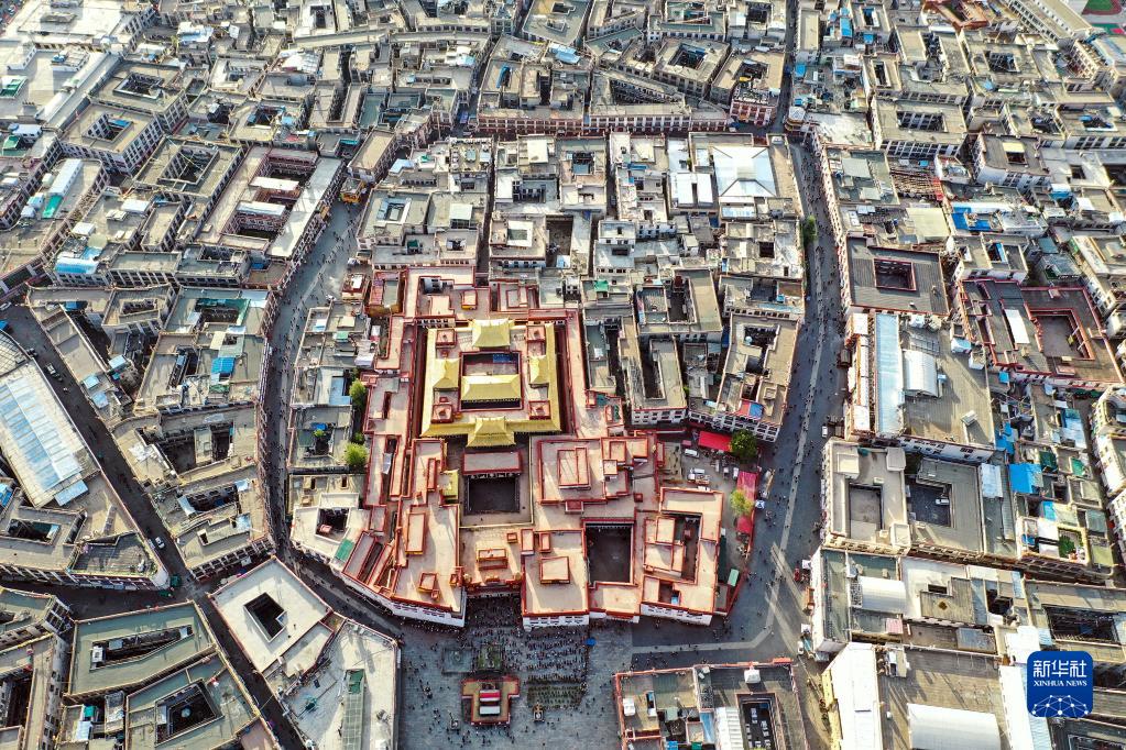 鳥瞰拉薩八廓街(2019年8月10日攝,無人機(jī)照片)。新華社記者 普布扎西 攝