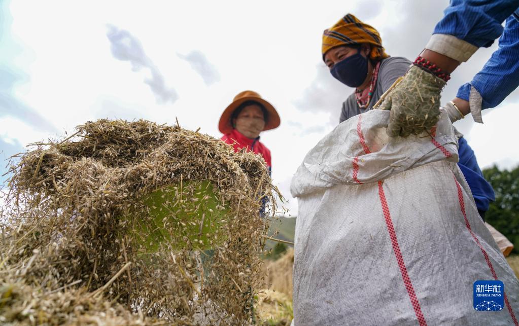 拉薩市達孜區(qū)克日村的農(nóng)民在收獲青稞(9月6日攝)。新華社記者 晉美多吉 攝
