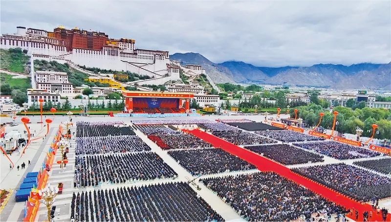2021年8月19日,西藏各族各界干部群眾2萬多人歡聚在拉薩布達拉宮廣場,熱烈慶祝西藏和平解放70周年。新華社記者 孫瑞博/攝
