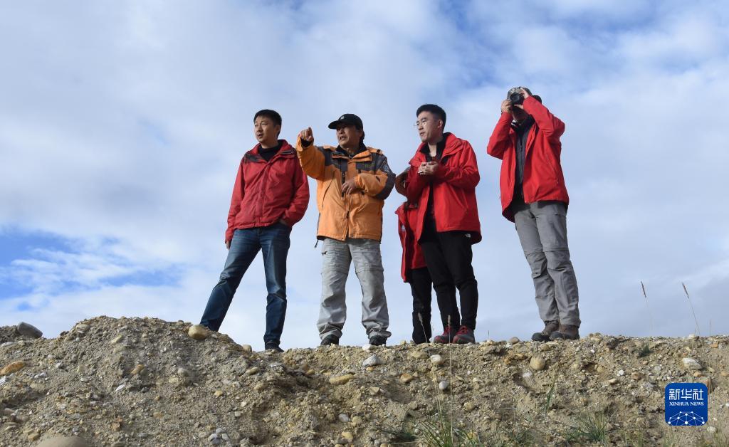 9月9日,在西藏阿里地區(qū)內(nèi)的喜馬拉雅山脈,中科院地理科學與資源研究所客座教授李渝生(左二)和年輕的科考隊員觀察地貌。新華社記者 杜剛 攝