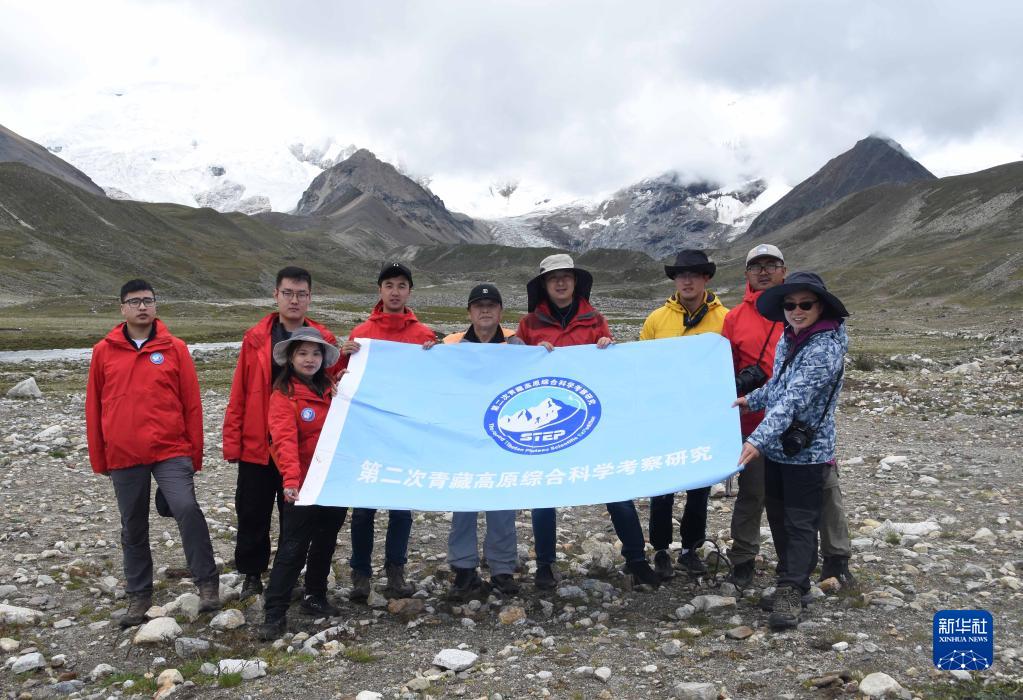 8月24日,在西藏日喀則市區(qū)域內(nèi)的喜馬拉雅山脈一處雪山下,中科院地理科學與資源研究所客座教授李渝生(中)和年輕隊員們合影?!⌒氯A社記者 杜剛 攝