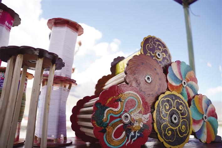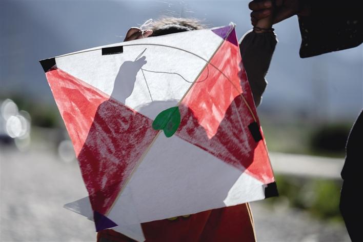 近日,記者來到位于江蘇實驗中學附近的拉薩河畔,這里聚集著不少賣風箏的小攤,旁邊也有很多放風箏的人。風箏在拉薩稱為“洽皮”,而在日喀則被稱為“秀洽”。西藏風箏最大的特色在于“斗風箏”,勝負取決于風箏絞線的質(zhì)量和風箏愛好者的放飛技巧。