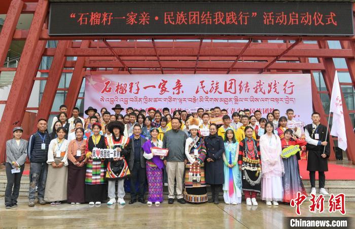圖為學(xué)生們在第五屆西藏青少年民族團結(jié)教育實踐營活動啟動儀式上合影留念?!∝暩聛硭?攝