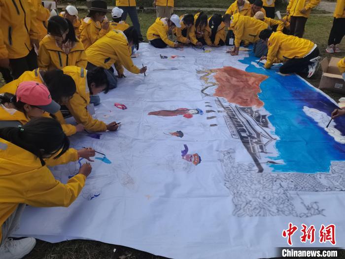 圖為學(xué)生們共繪一幅“中華民族一家親”?!∥鞑厍嗌倌陮嵺`教育基地供圖