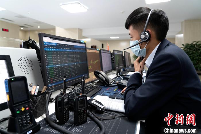 圖為機場工作人員了解相關(guān)動態(tài)。程征宇 攝