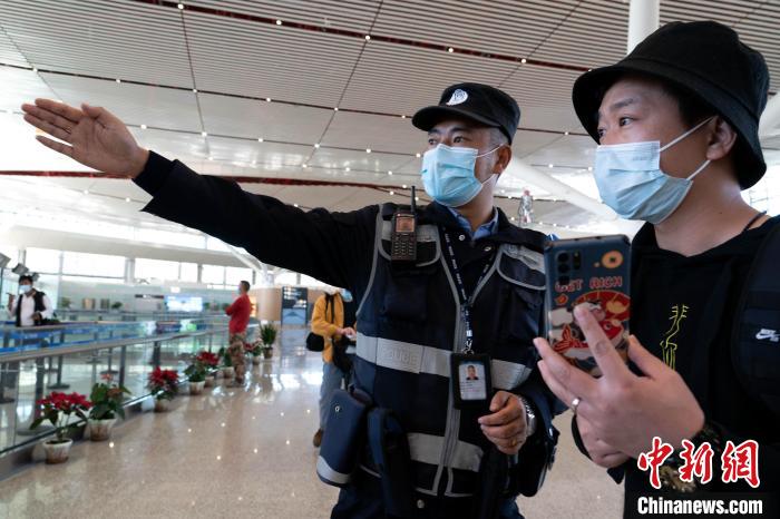 圖為機場安保人員為旅客提供服務(wù)。程征宇 攝