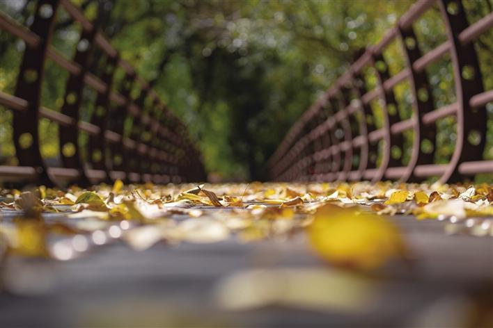 陽(yáng)光溫暖地包裹著大地,穿過草木,穿過人群,在地上折射出好看的光影。樹木一排排整齊站立著,樹葉時(shí)不時(shí)隨風(fēng)飄落,落在地面,鋪?zhàn)饕坏亟鹕牡靥?,行人走過,發(fā)出“沙沙”的聲響,伴著人們的說笑聲,格外動(dòng)聽美妙。