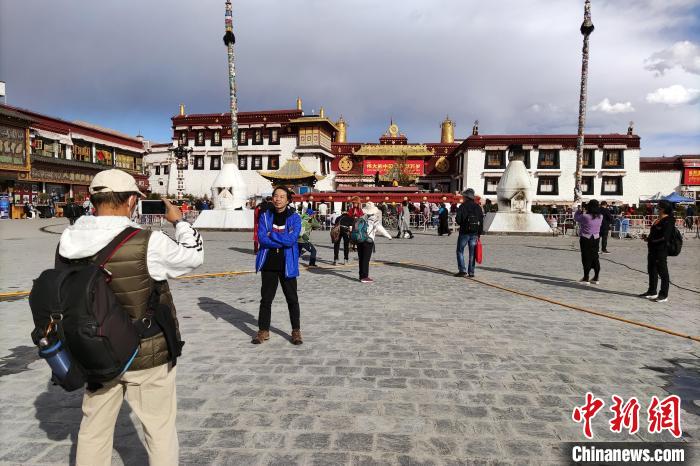 圖為大昭寺廣場,游客拍照留念。 江飛波 攝