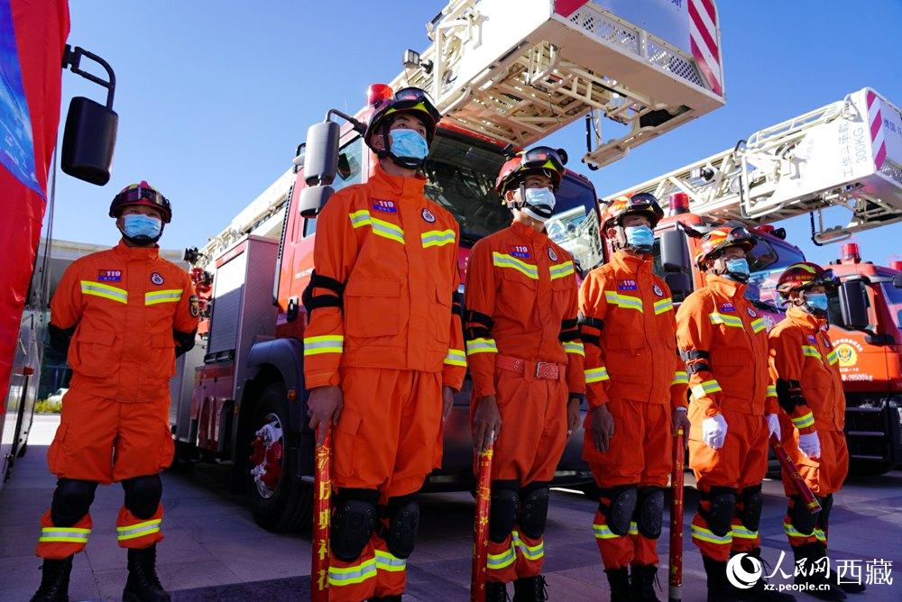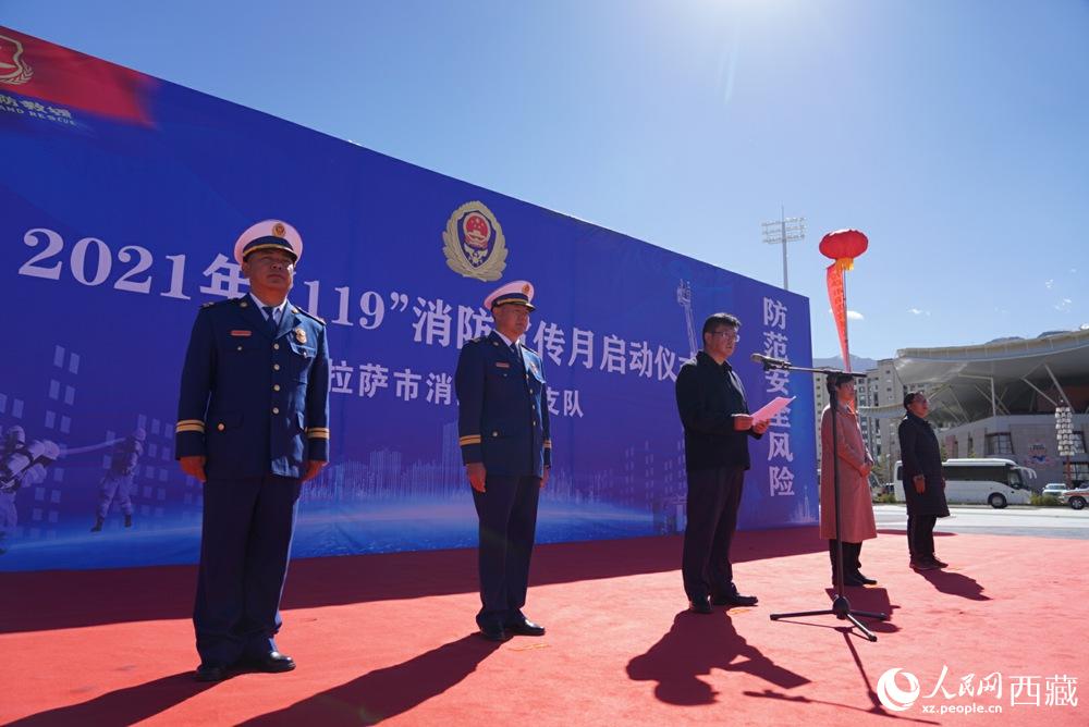 拉薩市2021年“119”消防宣傳月啟動(dòng)儀式現(xiàn)場(chǎng)。人民網(wǎng) 次仁羅布