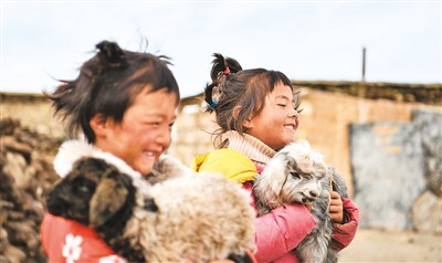 普瑪江塘鄉(xiāng)的孩子懷抱羊羔。新華社記者 晉美多吉攝