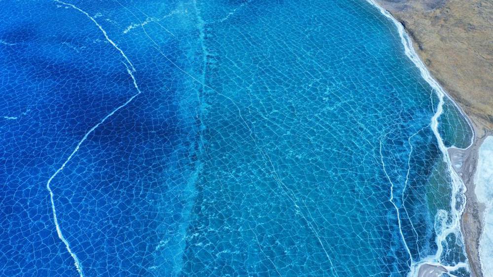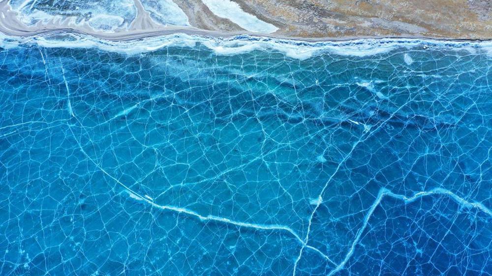 位于西藏山南市洛扎縣和浪卡子縣交界處的普莫雍錯(cuò),是喜馬拉雅山脈間的一個(gè)咸水湖,湖面海拔5070m。冬季的普莫雍錯(cuò)湖面會(huì)結(jié)冰,冰面通透可見(jiàn)湖底,在陽(yáng)光的照射下,呈現(xiàn)出動(dòng)人心魄的藍(lán)。