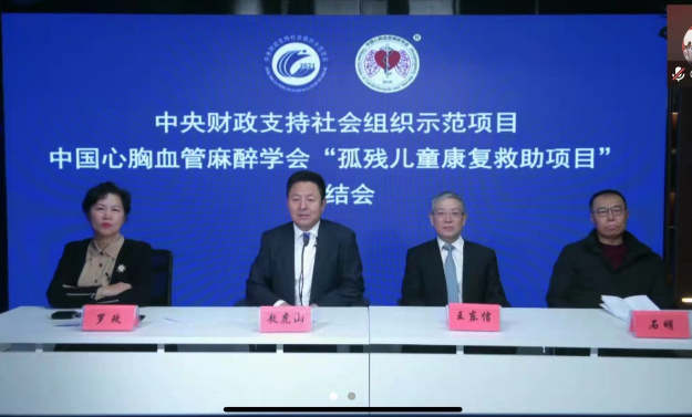2022年1月26日,中國心胸血管麻醉學會孤殘兒童康復救助項目總結會通過線上線下相結合方式舉行。民政部兒童福利司兒童福利處處長李勇,中國醫(yī)學科學院阜外醫(yī)院麻醉科主任醫(yī)師、中國心胸血管麻醉學會秘書長敖虎山,國家兒童醫(yī)學中心主任、首都醫(yī)科大學附屬北京兒童醫(yī)院院長倪鑫,中國人民解放軍總醫(yī)院第七醫(yī)學中心附屬八一兒童醫(yī)院院長封志純等分別致辭,總結會由中國心胸血管麻醉學會孤殘兒童康復救助項目領隊羅玫主持。