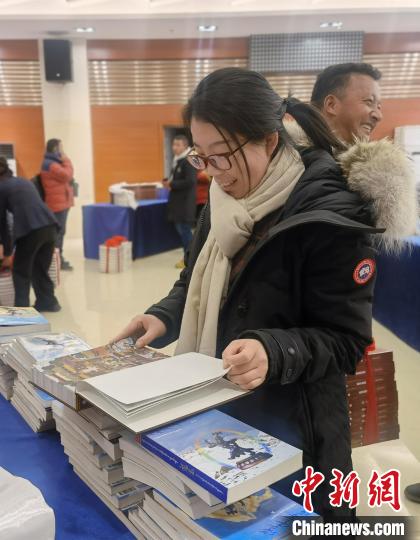 圖為《格薩爾》藏譯漢叢書首發(fā)儀式上讀者現(xiàn)場(chǎng)翻閱圖書?!≮w延 攝