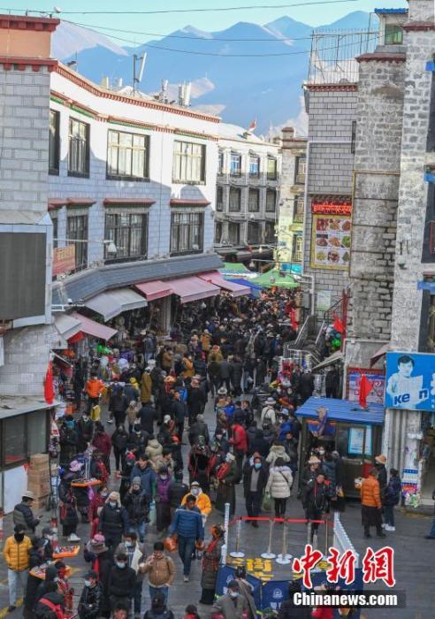 今年的農(nóng)歷春節(jié)與藏歷新年相隔一個(gè)月,半個(gè)月前,拉薩早已有了過(guò)年的氣氛,尤其年貨市場(chǎng)的熱鬧將一直持續(xù)到3月初。
