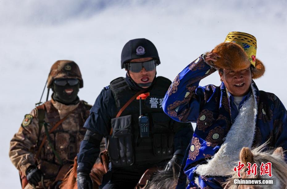1月31日,西藏阿里高原氣溫驟降至零下30攝氏度,駐守在“生命禁區(qū)”的阿里軍分區(qū)某邊防團(tuán)聯(lián)合駐地政府、公安一同,前往海拔5000多米的某山口執(zhí)行軍警民聯(lián)合巡邏任務(wù)。巡邏分隊(duì)不畏嚴(yán)寒缺氧,踏雪巡邏,守衛(wèi)著邊境的安寧。用特殊的方式,迎接新春的到來。劉曉東 攝