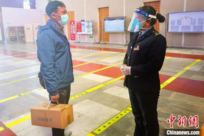 圖為羅布在林芝火車站引導(dǎo)乘客。國鐵青藏集團有限公司 供圖